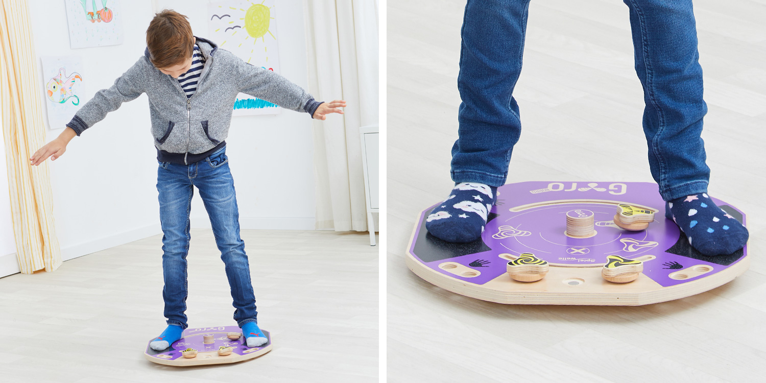 Bringt durch Geschick und Koordination die magischen Kreisel zum Drehen und führt sie mit Schwung auf dem Gyro-Board im Kreis herum! Stellt euch auf das Board oder steuert es mit den Händen. Mit kleinen Bewegungen beginnt sich der Kreisel zu drehen. Mit gezielten, fließenden Gewichtsverlagerungen gerät der Kreisel in Schwung und zieht drehend seine Bahnen. Konzentration, Rhythmusgefühl sowie Körperkoordination führen zu wachsenden Erfolgen und und viel Spaß. Das macht das Gyro-Board zu einem einzigartigen Trainingsgerät für die grundlegenden motorischen Fähigkeiten des gesamten Körpers.